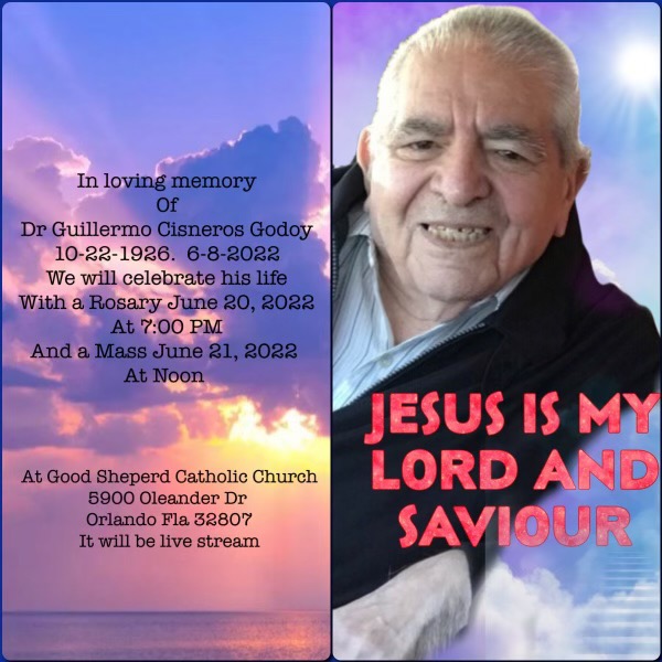 The Funeral Mass will be June 21, 2022 at Noon at Good Shepherd Catholic Church. 5900 Oleander Dr. Orlando, Fl 32807.